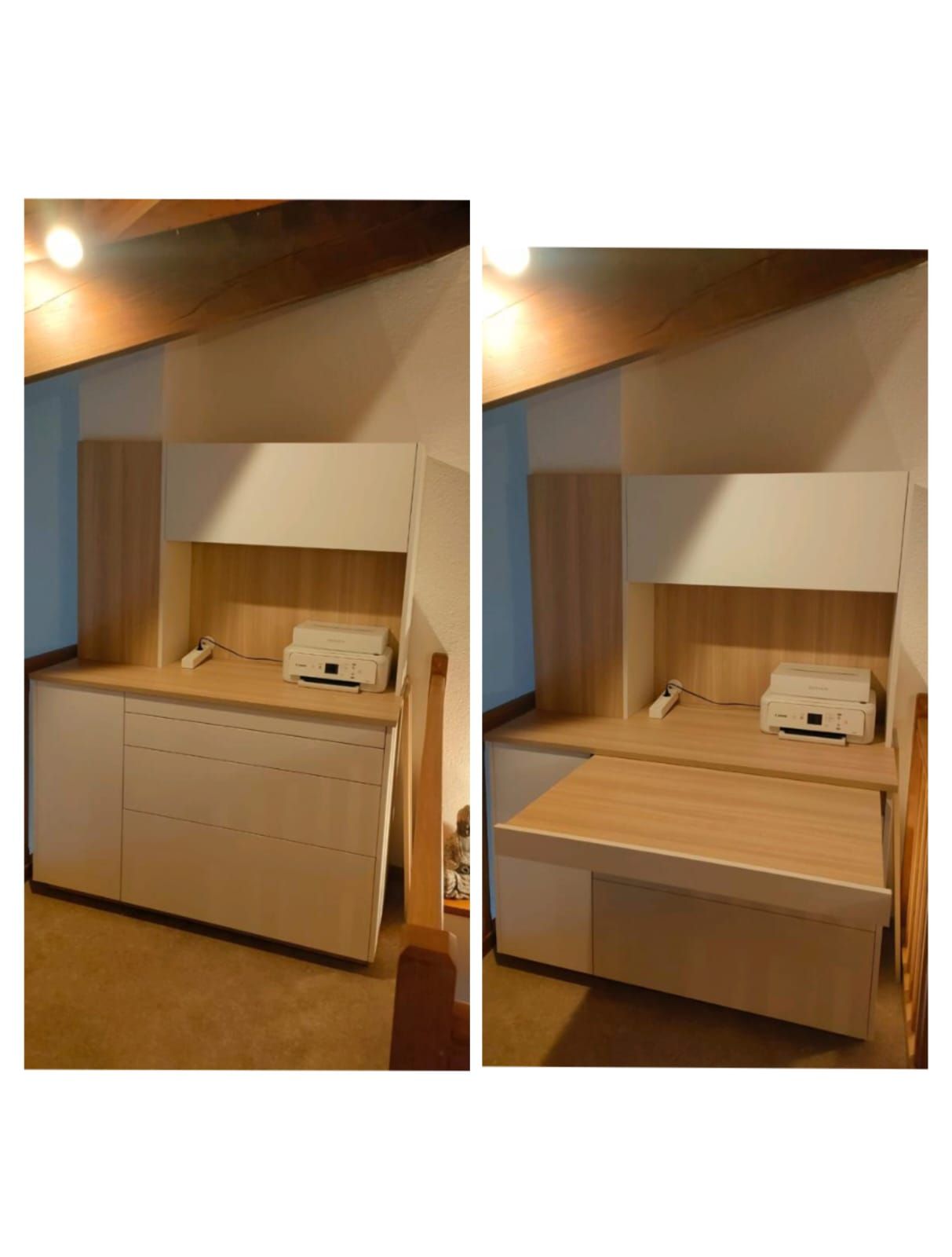 Selon vos envies et vos besoins de rangements, nous pouvons vous proposer des aménagements divers et complémentaires : bibliothèques, comptoir, bar, meubles pour salle de bain, dressing, penderie, rangement office, cellier, etc. N'hésitez pas à nous consulter.